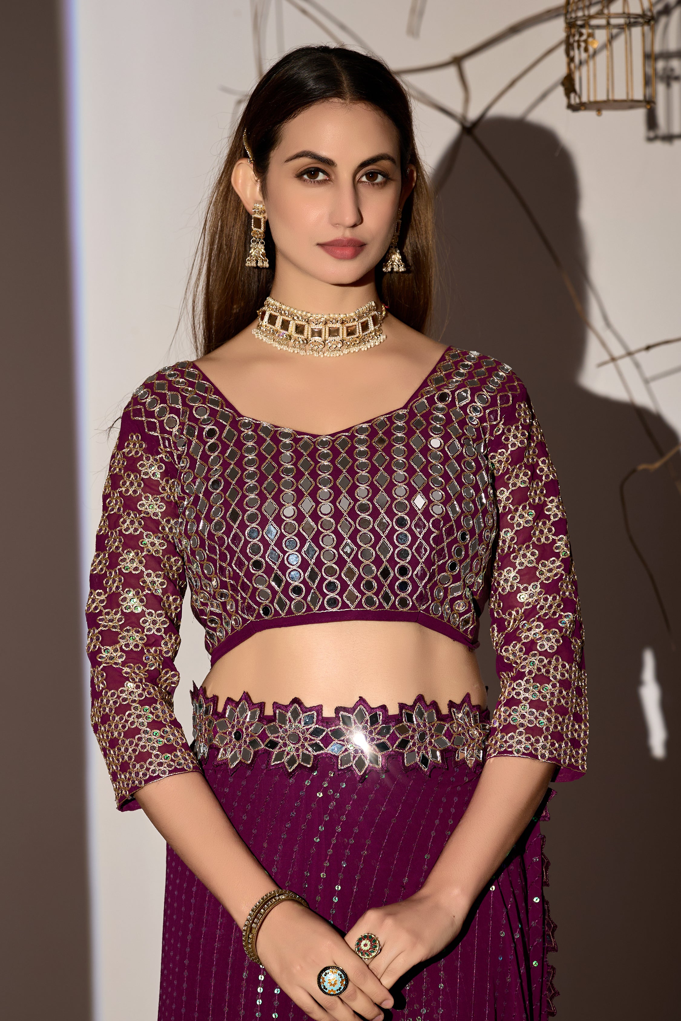 Glow with elegance in this Radiant Tangerine Georgette Saree, designed with shimmering sequin work all over and a stunning mirror-work floral border. The vibrant orange hue brings a festive charm, while the delicate embellishments add a glamorous touch. Paired with a matching blouse featuring intricate embroidery and mirror accents, this saree is a perfect choice for weddings, festive celebrations, and special occasions.